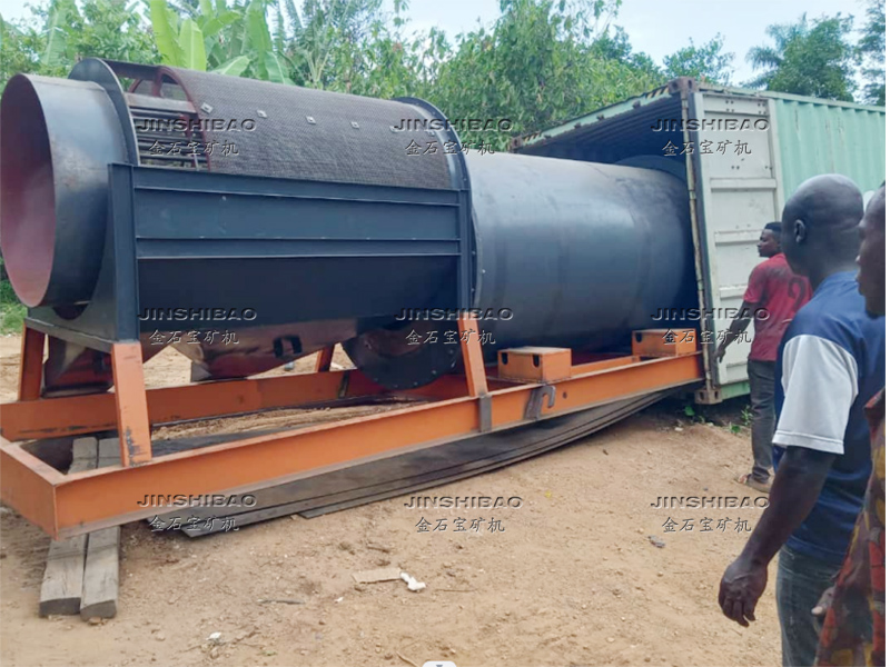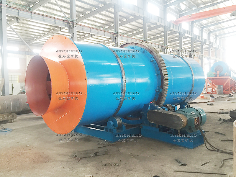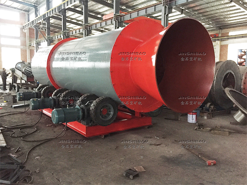 滾筒洗礦機(jī)的筒體由四個(gè)滾輪支撐,電機(jī)帶動(dòng)減速機(jī)傳動(dòng),大小齒輪帶動(dòng)清洗筒體低速旋轉(zhuǎn)。含有泥團(tuán)或石粉的物料從進(jìn)料口給入,進(jìn)入旋轉(zhuǎn)的滾筒內(nèi),清洗滾筒內(nèi)壁安裝有一定角度的攪拌葉片,同時(shí)物料不斷被帶起拋落,自進(jìn)料端到出料端移動(dòng)過(guò)程中多次循環(huán),并被順向或逆向的高壓沖洗水沖刷洗滌,清洗干凈的物料經(jīng)過(guò)尾部出料端篩分脫水后排出,從而達(dá)到洗礦、篩分、脫泥作業(yè)。